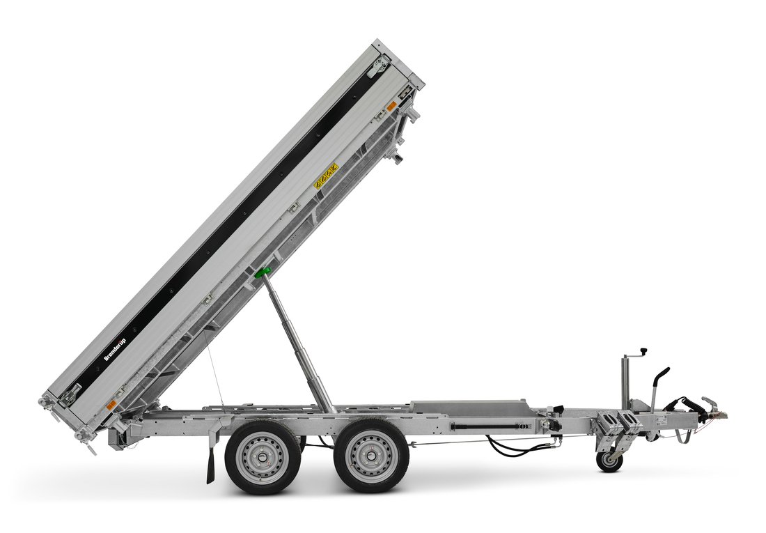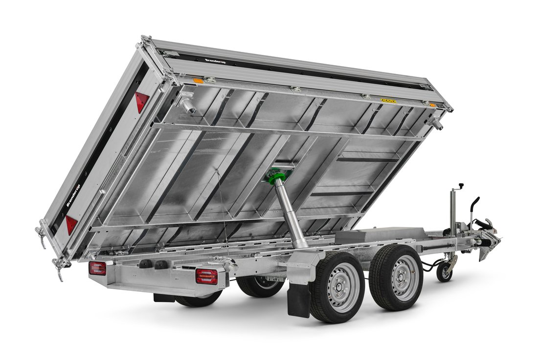 Dieser gebremste Dreiseitenkipper ist für den Transport und das Entladen schwerer Lasten in anspruchsvollen professionellen Umgebungen konzipiert. Die verlängerte Ladefläche ermöglicht den Transport von großvolumigen Materialien oder Ausrüstungen und gewährleistet gleichzeitig eine gute Stabilität beim Rangieren. Die optimierte Ladehöhe erleichtert den Zugang zur Ladefläche, insbesondere beim Einsatz von Rampen zum Verladen von rollenden Geräten. Das unterstützte Kippsystem ermöglicht ein gleichmäßiges und kontrolliertes Entladen, während die Gesamtkonstruktion auf einen vielseitigen Einsatz auf Baustellen, im Landschaftsbau oder beim Transport von Schüttgütern ausgelegt ist.