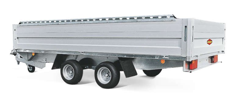 Die an allen vier Seiten klappbaren Bordwände in Verbindung mit abnehmbaren Eck- und Zwischenrungen ermöglichen eine hohe Einsatzflexibilität. Dieses Modell eignet sich besonders für den Transport von schweren oder voluminösen Materialien, die dank der integrierten Zurrpunkte sicher fixiert werden können.