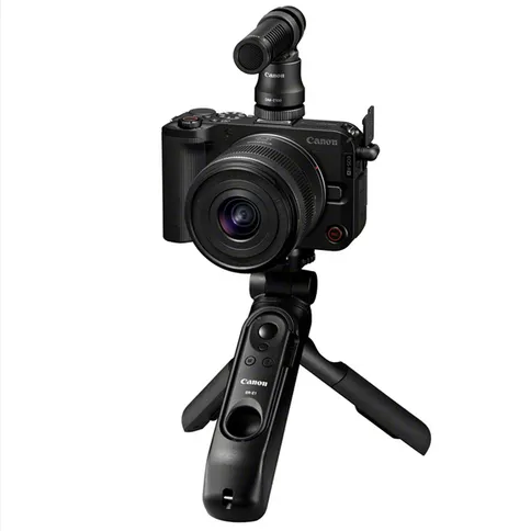 Die Canon EOS R50 V mit RF-S 14-30mm IS STM Power Zoom Objektiv ist ein videoorientiertes spiegelloses APS-C-Kit für Content Creator und kombiniert einen 24,2-Megapixel-Sensor, das RF-Bajonett sowie ein Zubehörset für Vlogging, Streaming und professionelle Videoproduktion.