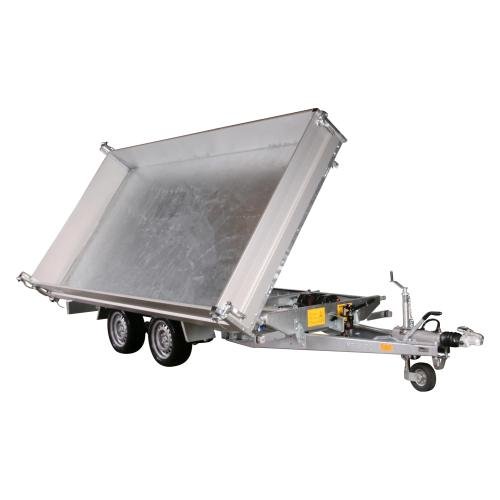 Der Dreiseitenkipper-Anhänger Variant Modell 3017TB30K ist für den Transport von Materialien, Maschinen und Lasten konzipiert, die ein rückwärtiges oder seitliches Entladen erfordern. Er stammt aus der Variant MAXI-LOAD-Serie, basiert auf einem robusten Stahlrahmen und verfügt über Aluminium-Bordwände mit klappbaren Vorder-, Rück- und Seitenwänden. Das Kippsystem wird über eine elektrische Hydraulik betrieben und ermöglicht ein kontrolliertes und funktionales Entladen. Mit einer Nutzlast von 2085 kg und einem zulässigen Gesamtgewicht von 3000 kg ist dieser Anhänger für professionelle Anwendungen geeignet, die Vielseitigkeit und hohe Transportkapazität erfordern.