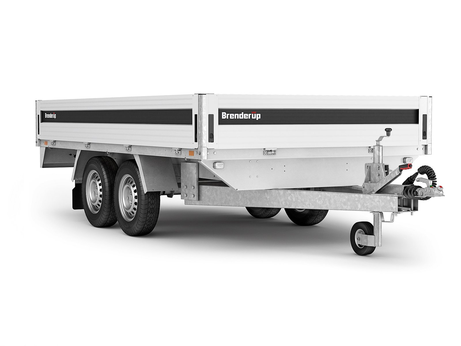 Der Brenderup 5325 ATB 2500 kg ist für den Transport sehr schwerer und voluminöser Lasten im Rahmen anspruchsvoller Projekte konzipiert. Die Hochplattform-Bauweise ermöglicht eine optimale Nutzung der Ladefläche, während die Aluminiumkonstruktion dazu beiträgt, das Leergewicht zu kontrollieren und gleichzeitig eine für den intensiven Einsatz geeignete Steifigkeit zu bieten. Integrierte Schutzprofile tragen zum Erhalt der Ladefläche bei wiederholten Handhabungen bei. Die unter der Ladefläche positionierten Räder erleichtern den Zugang und ermöglichen eine vollständige Nutzung der verfügbaren Breite. Mit einem zulässigen Gesamtgewicht von 2500 kg und einer Nutzlast von 2000 kg sorgt dieses gebremste Tandemachs-Modell für eine ausgewogene Lastverteilung und eine für häufige Fahrten geeignete Stabilität. Die Ladehöhe von etwa 74 cm erleichtert das Be- und Entladen. Die klappbaren Aluminium-Bordwände an allen vier Seiten bieten eine hohe Flexibilität für den Transport sperriger Güter, während integrierte Verzurrpunkte eine sichere Fixierung der Ladung während des Transports gewährleisten.