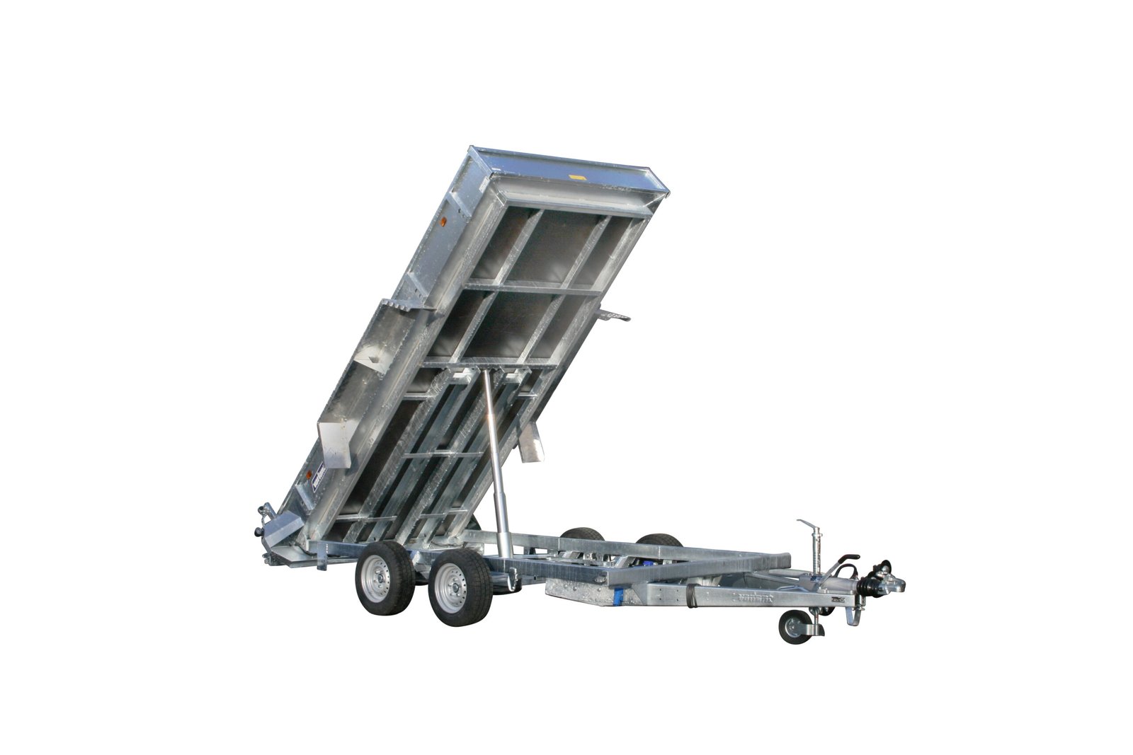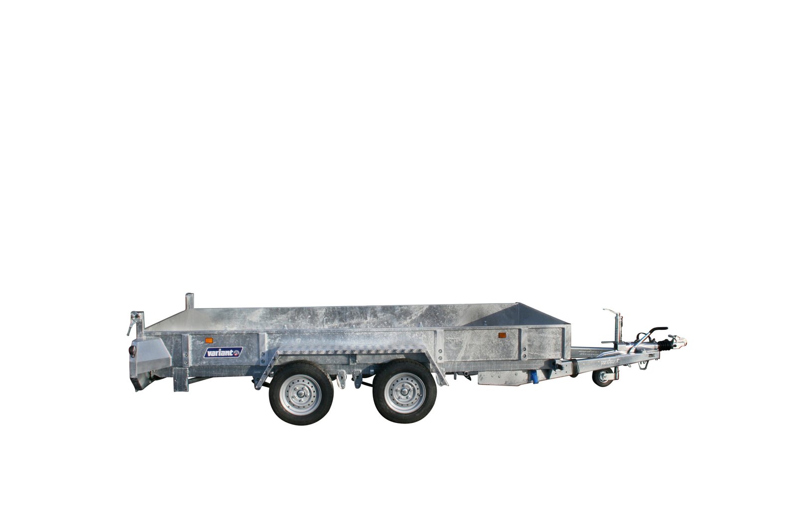 Maschinentransporter-Anhänger Variant Kipper 3515 MT aus der robusten MAXI-LOAD Baureihe, konzipiert für den Transport von Maschinen und schweren Lasten auf der Baustelle. Diese Version „Sonderedition“ zeichnet sich durch Parabelfederungen aus, die zu einem für den professionellen Einsatz geeigneten Fahrverhalten beitragen. Der Anhänger basiert auf einem vollständig geschweißten und feuerverzinkten Stahlfahrgestell, einschließlich Deichsel, Längsträgern und Plattformboden, und bietet einen dauerhaften Korrosionsschutz. Das elektrisch-hydraulische Heckkippsystem mit einem Kippwinkel von 50° erleichtert die Entladevorgänge. Mit zwei Achsen, einem zulässigen Gesamtgewicht von 3.500 kg und einer Nutzlast von 2.620 kg erfüllt dieses Modell die Anforderungen von Bauunternehmen und Kommunen.