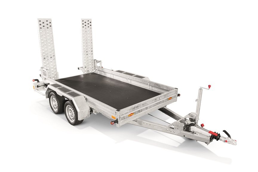 Der Maschinentransporter Böckmann BT-ST 3518/30 AS ist für den Transport von Maschinen und Baustellenausrüstung in einer kompakten und robusten Ausführung konzipiert. Dieses Modell gehört zur Baumaschinen- und Kommunalanhänger-Serie des Herstellers Böckmann. Die Konstruktion basiert auf einem Stahlrahmen mit verzinkten Stahlbordwänden und bietet eine für den professionellen Einsatz geeignete Widerstandsfähigkeit. Er ist mit hochklappbaren, gelochten und ausziehbaren Auffahrrampen mit Halterung ausgestattet, die das Verladen der Maschinen erleichtern. Das Fahrgestell verfügt über ein automatisches Stützrad sowie eine freie Deichsellänge von ca. 1550 mm, um die Stabilität beim Rangieren und Abstellen zu verbessern. Abgerundet wird die Ausstattung durch eine Beleuchtungsanlage mit Rückfahrlicht und eine 13-polige Steckdose für den vorschriftsmäßigen Einsatz im Straßenverkehr.