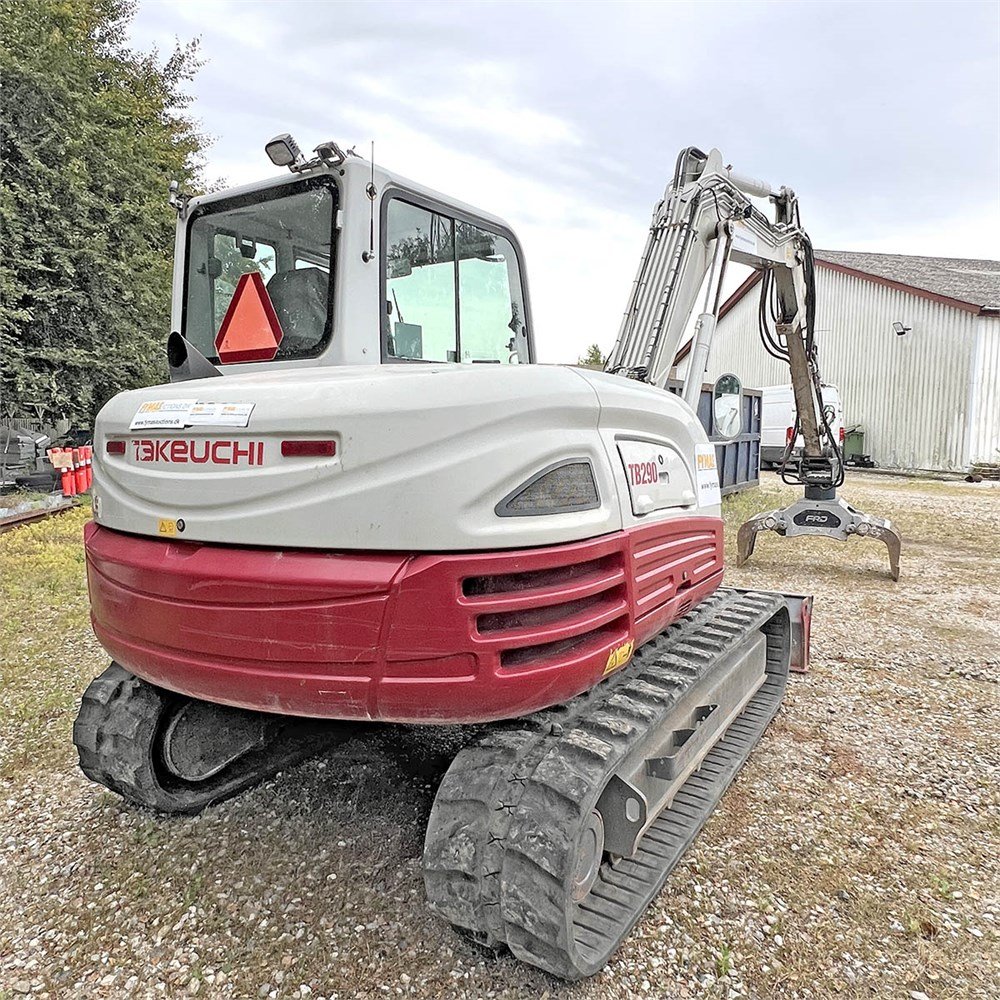 Der Takeuchi TB290 ist ein robuster 8,5-Tonnen-Bagger, ausgestattet mit einem Monoblock-Ausleger,