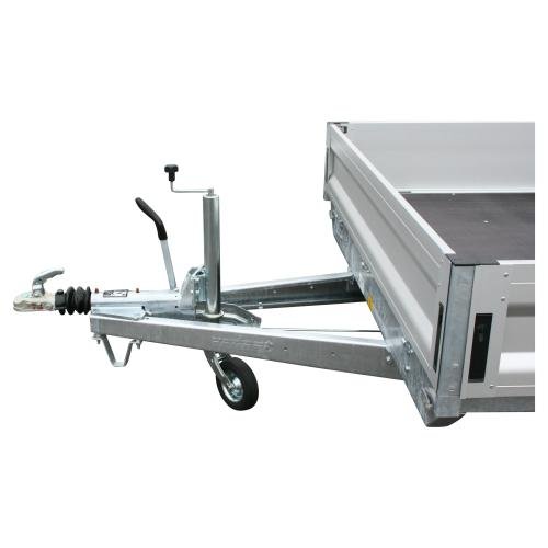 Mit einem zulässigen Gesamtgewicht von 3000 kg und einer Nutzlast von rund 2440 kg ermöglicht dieser gebremste Tandemanhänger einen sicheren Transport auch bei voller Beladung. Die Ladehöhe von etwa 57 cm erleichtert die täglichen Be- und Entladearbeiten. Die auf allen vier Seiten klapp- und abnehmbaren Bordwände bieten große Flexibilität, insbesondere beim seitlichen Beladen oder beim Transport langer Güter. Integrierte Zurrpunkte sorgen für eine zuverlässige Ladungssicherung während der Fahrt.